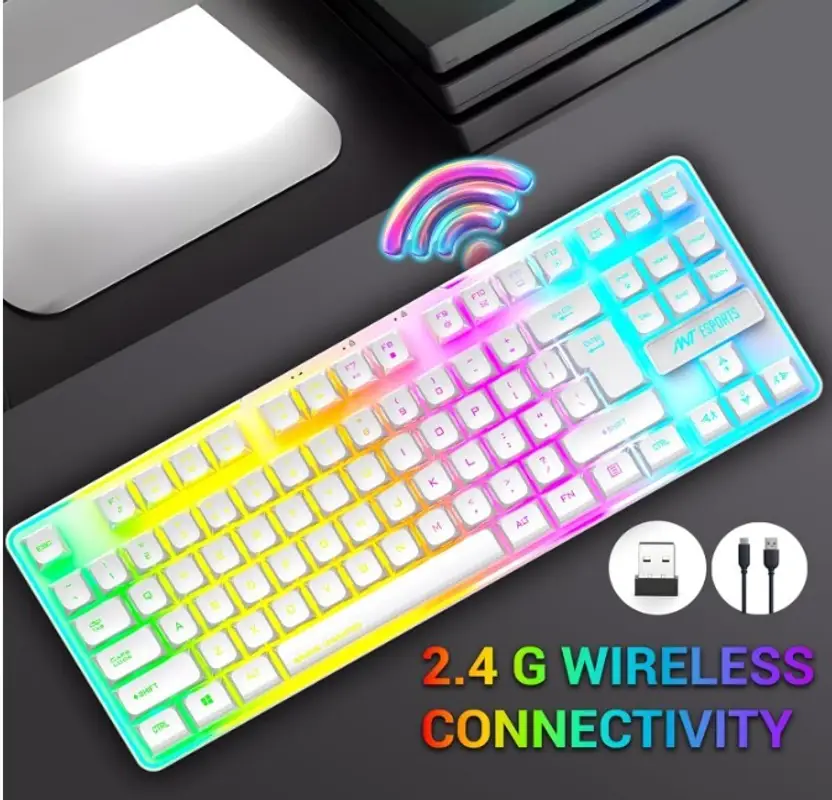 Ant Esports MK720 Pro V2 Wireless Standard Gaming Keyboard Compatible with Desktop, Laptop, Mac (White)